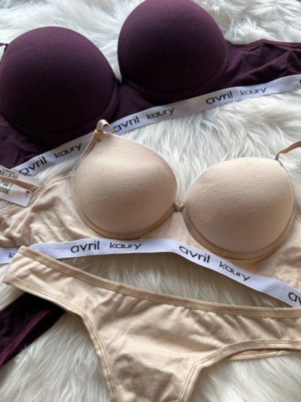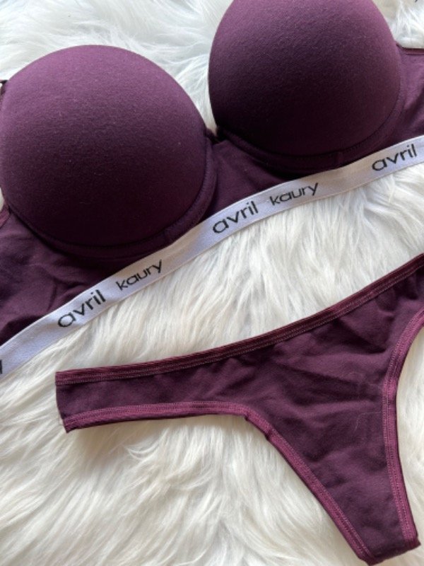 Conjunto de algodón con elástico personalizado. Corpiño taza soft con push up y cola less.