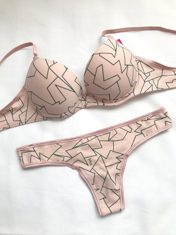 Conjunto de algodón Lines. Corpiño taza soft push up y cola less.