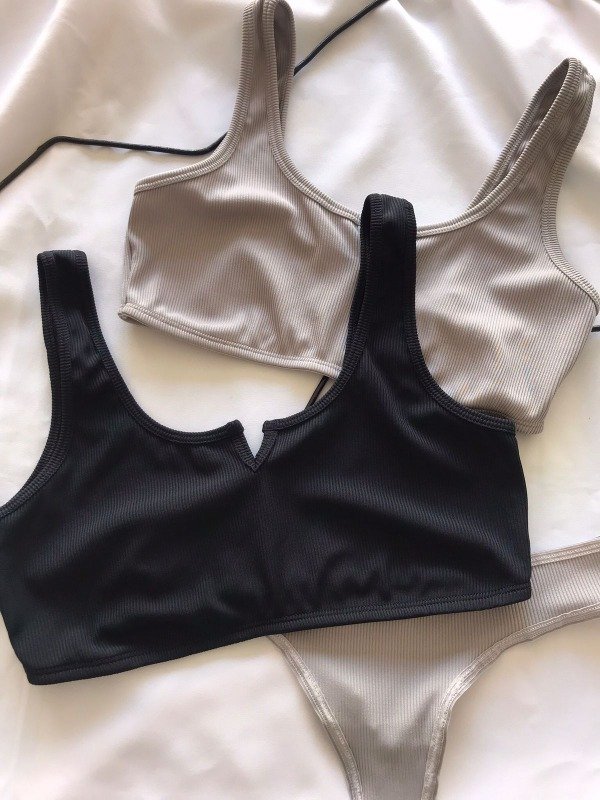 Conjunto de morley. Corpiño top con detalle y cola less.