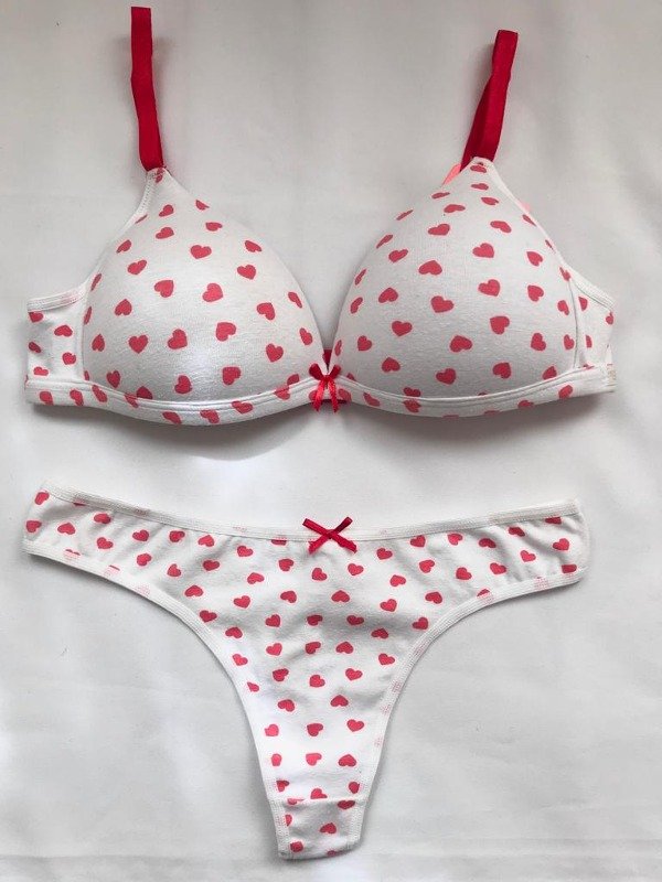 Conjunto triangulito soft de algodón y lycra estampado heart. Con colaless.