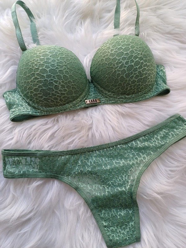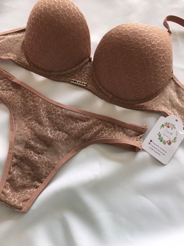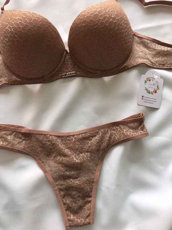 Conjunto Taza soft, push up de micro tul fantasía con colaless.
