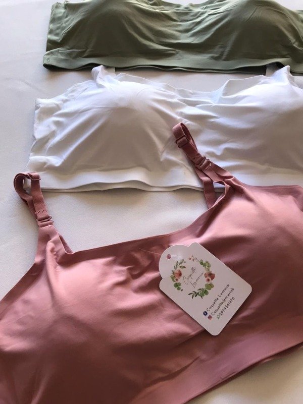 Top sin costuras con breteles regulables y espalda recta. Taza desmontable.