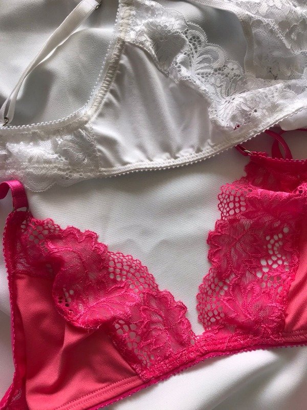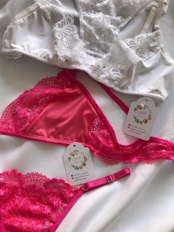 Conjunto triángulo de microfibra con puntilla sin soft con tanga.